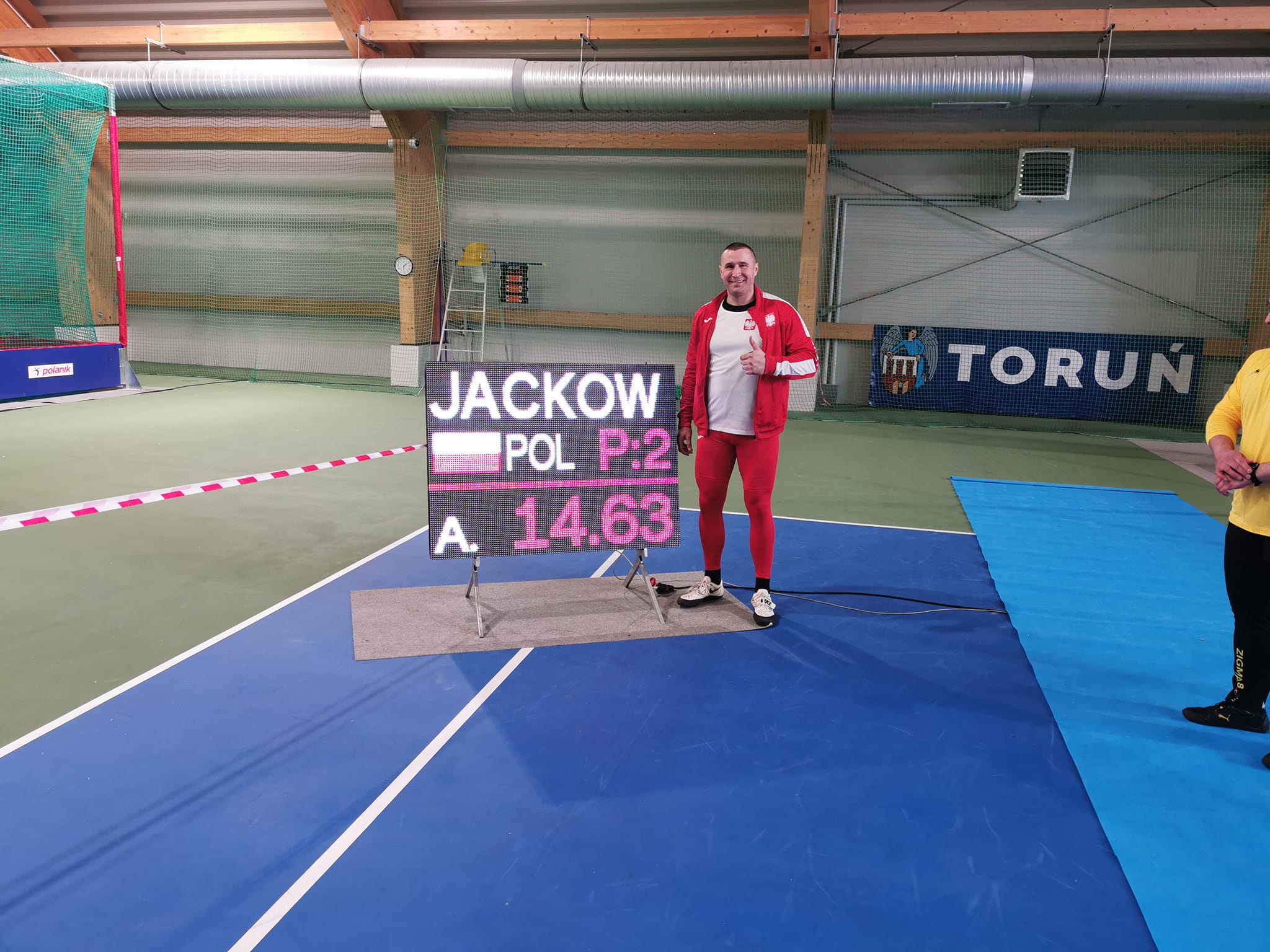 W pchnięciu kulą uzyskał 14,63 i przegrał z innym Polakiem – Marcinem Gąsiorowskim. W całym konkursie miał bardzo równą serię. Wynik 14,63 uzyskał dwukrotnie. Zwycięzca natomiast miał tylko jedno pchnięcie, które zapewniło mu zwycięstwo. Jacków natomiast miał aż cztery pchnięcia lepsze od jego drugiego rezultatu.