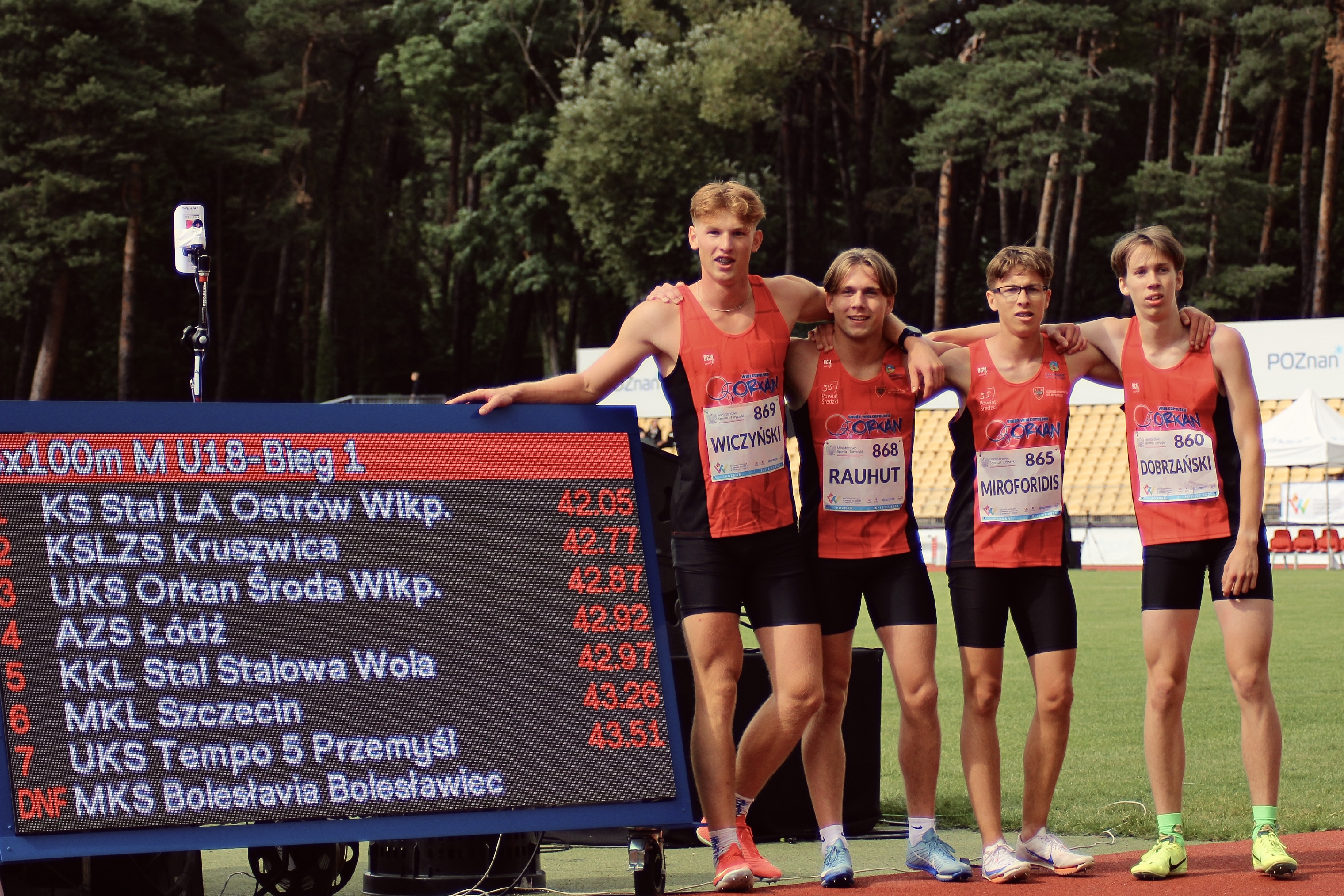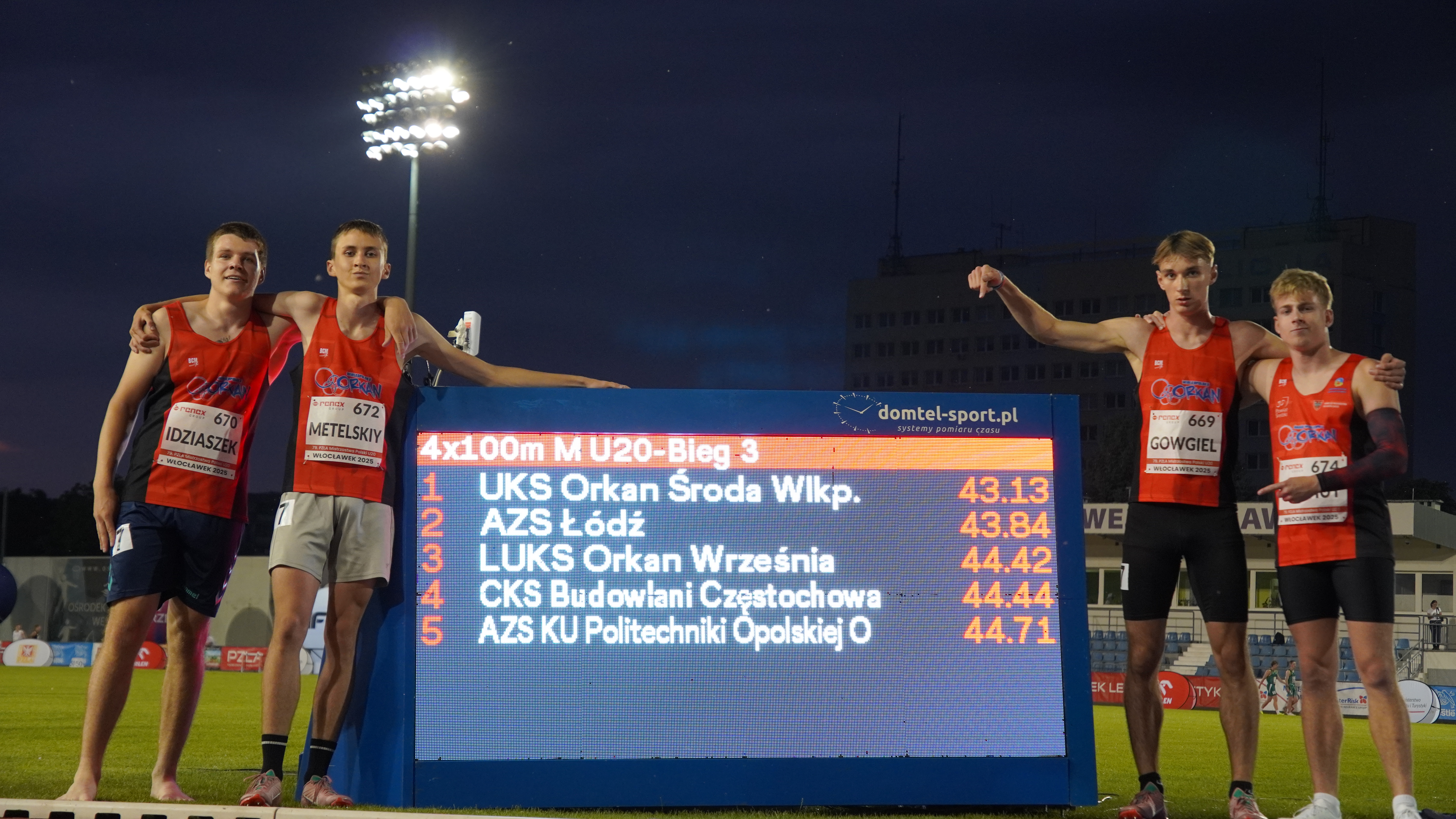 Nasi zawodnicy zrealizowali do doskonale. Po doskonałych zmianach na ostatnią prostą Patryk Rauhut wybiegł na piątej pozycji. Wspaniałym finiszem dogonił dwie sztafety i zameldował się na mecie jako trzeci. A w pokonanym polu, na czwartym miejscu przybiegła sztafeta AZS Łódź. Swój najlepszy wynik z eliminacji poprawili z 42,99 na 42,87. Wynik z eliminacji faktycznie dałby im piąte miejsce. W eliminacjach w składzie wystąpił także Witold Grabowski, więc sztafeta ma jeszcze dobrych rezerwowych.