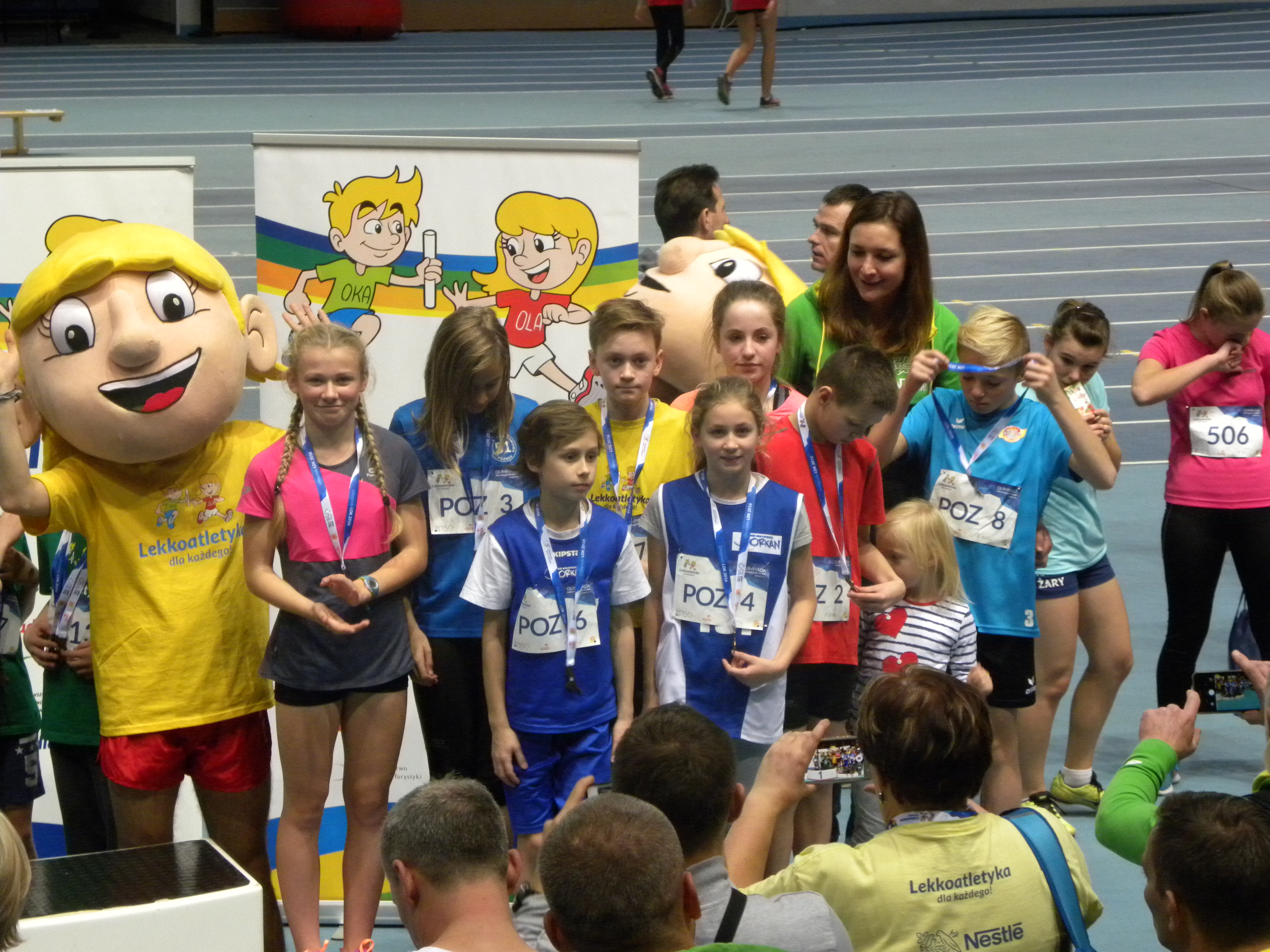 W zawodach rywalizowały najlepsze ośrodki lekkoatletyczne z północnej połowy Polski. Część południowa miała swoją olimpiadę w Spale. Nasi zawodnicy startowali w składzie OLA Poznań, lecz stanowili większość w reprezentacji. W rywalizacji drużynowej szkół podstawowych, gdzie reprezentacja składała się z ośmiu zawodników aż sześciu to wychowankowie Agnieszki Cichowlas – trenerki w programie Lekkoatletyka dla Każdego. W zespole gimnazjalistów było podobnie, bo w ósemce pięciu to zawodnicy średzcy. Drużynowa rywalizacja polegała na wykonaniu trzech prób przez wszystkich ośmiu zawodników. Był to bieg na 60m, skok w dal i rzut piłką lekarską. Po tych konkurencjach dwa najlepsze zespoły walczyły między sobą o drużynowe zwycięstwo w sztafecie 8x200m. Kolejne cztery walczyły o miejsca od trzeciego do szóstego w tej samej sztafecie. Pozostałe o kolejne miejsca. Nasz zespół podstawówek prowadzony przez trener Agnieszkę Cichowlas dzielnie walczył we wszystkich trzech konkurencjach i przed sztafetą zajmował czwarte miejsce. Zdobył sobie tym samym prawo do walki w tej serii sztafet, która decydowała o miejscach 3-6. Zwycięstwo w tej serii oznaczało zatem miejsce na podium. Ich rywalami były mocne ekipy, a za faworytów uchodziła reprezentacja Włocławka. Każda sztafeta składała się z czterech dziewcząt i czterech chłopców. Pierwsza w naszej sztafecie ku zaskoczeniu rywali pobiegła dziewczyna. Była to Martyna Dubert. Kolejne zaskoczenie to prowadzenie jakie objęła nasza sztafeta, ponieważ Martyna pokonałą wszystkich i oddała jako pierwsza pałeczkę. Niespodzianka spora, ponieważ na pierwszej zmianie zwykle biegają silniejsi zawodnicy. Tego prowadzenia już nasza sztafeta nie oddała, ponieważ kolejni zawodnicy na to nie pozwolili. Na ostatnich dwóch zmianach biegli najlepsi chłopcy: Marcin Kaczor i Filip Kaczmarek. Pogoń faworytów z Włocławka była bardzo widowiskowa, jednak nieskuteczna.