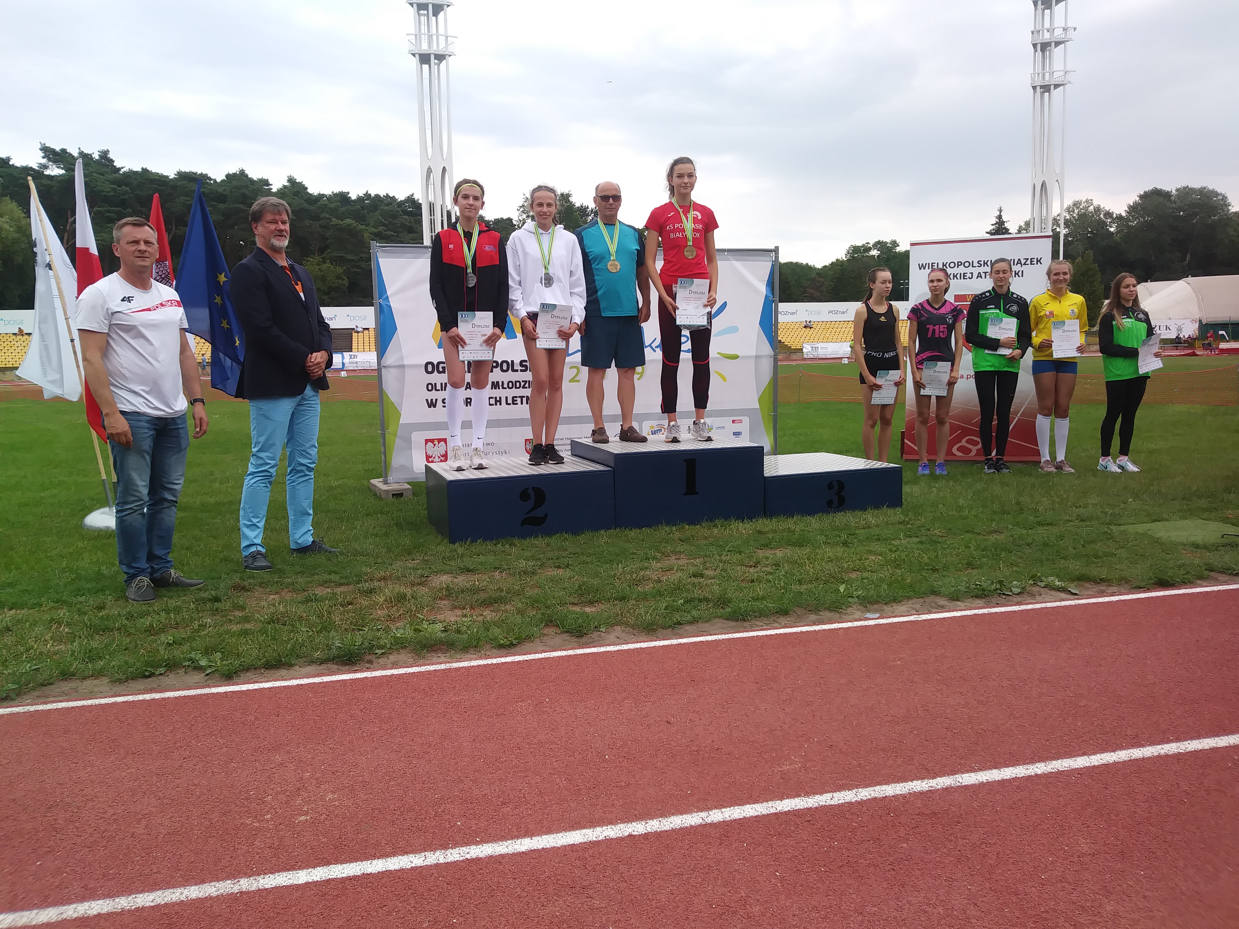 Kolejne sukcesy odnieśli nasi zawodnicy podczas XXV Ogólnopolskiej Olimpiady Młodzieży w Poznaniu Kwalifikacje zdobyło i wystąpiło w finałach czterech naszych reprezentantów, z czego trzech z rocznika 2003. Tylko dla Roksany Poll było to drugi sezon w tej kategorii. Roksana występowała już w ubiegłorocznych finałach i ma na koncie medalowe występy na mistrzostwach Polski. W Poznaniu startowała z pozycji czwartej zawodniczki w tabelach. Trzy rywalki posiadały tegoroczne wyniki lepsze od naszej skoczkini. Roksana wykazała się jednak klasą. Wszystkie wysokości pokonywała bezbłędnie, a rywalki notowały strącenia. Lepsza okazała się tylko faworytka, reprezentantka Polski na Igrzyska EYOF z rekordem życiowym 176. Miała dużo szczęścia, ponieważ wysokość 165cm pokonała dopiero w trzeciej próbie. Roksana pokonała ją w pierwszej i w tym momencie była nawet liderką konkursu. Ola Jankowksa z Białegostoku opanowała jednak nerwy i pokonała później kolejne wysokości. Roksana kolejnej – 168 cm już nie pokonała, jak i reszta rywalek. W ten sposób Roksana ukończyła konkurs na drugiej pozycji i zdobyła swój czwarty już medal Mistrzostw Polski.