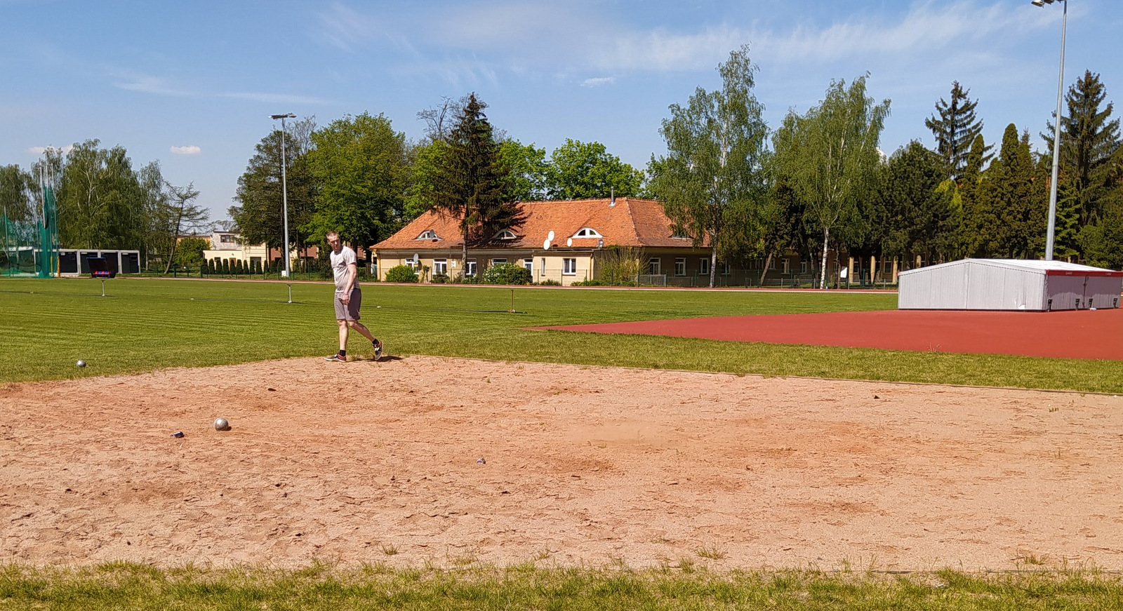 Pierwsze próby treningowe po przymusowej przerwie wskazują, że nadzieje nie są płonne. Na treningu też trzeba się nachodzić. Po udanym pchnięciu – aż na trawę.