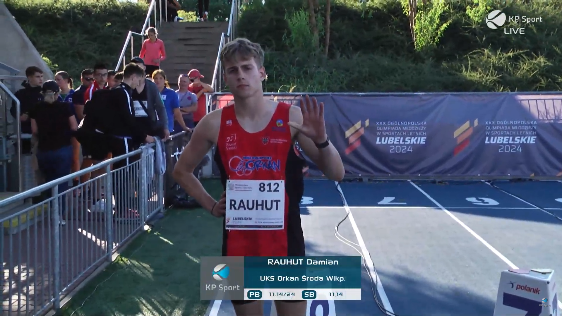 Tuż po niej w blokach startowych do biegu na 1oo metrów stanął Damian Rauhut. Z czasem 11,24 zajął dziewiętnaste miejsce. Awansował na 23 miejscu, więc występ udany. W sprincie poziom tegorocznych juniorów w Polsce jest wyjątkowy i a wyniki plasują się w czołówce europejskiej.