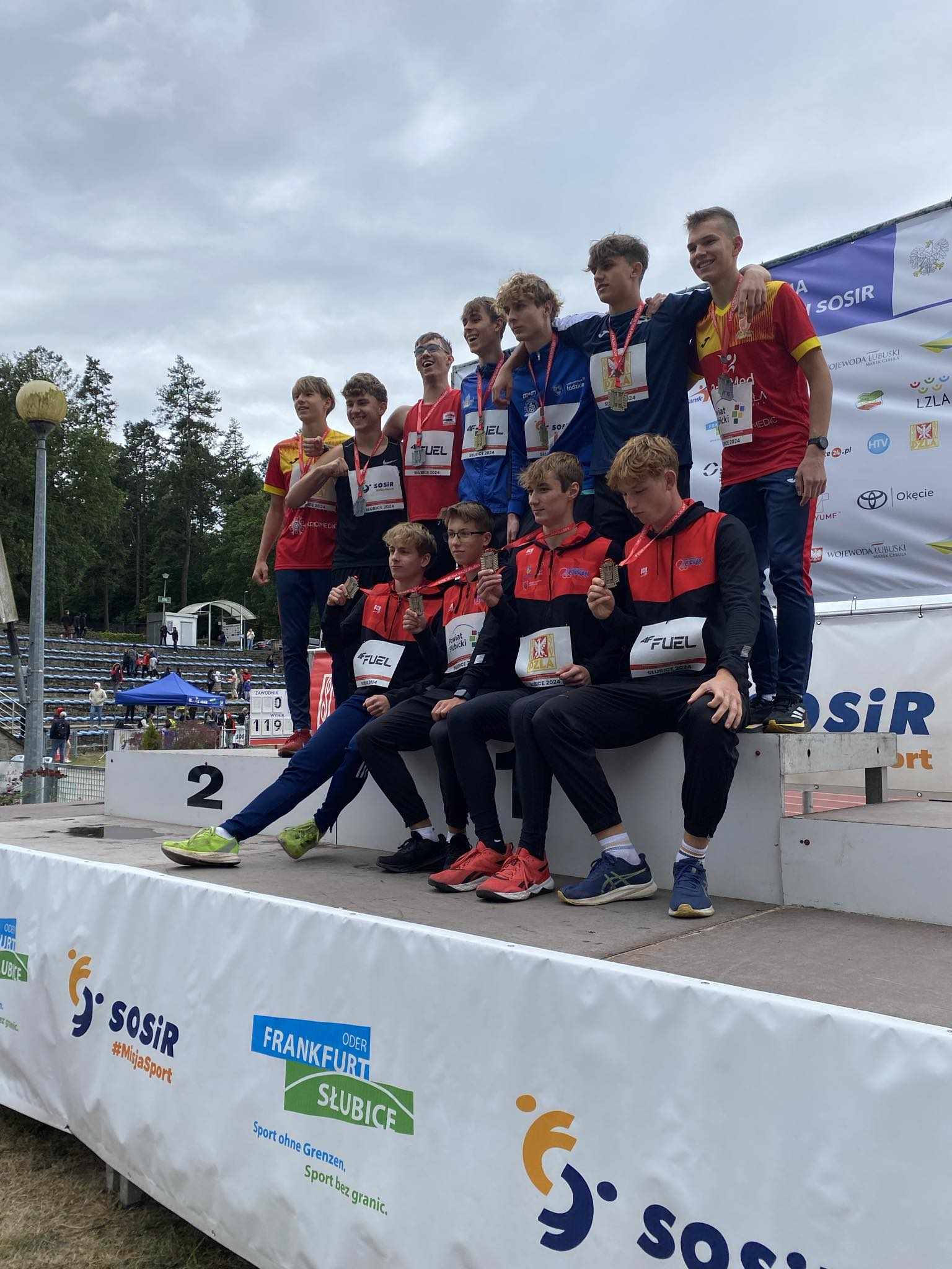 Chłopcy zrobili jednak niespodziankę, a zwłaszcza Kacper. Nie oszczędzając się co byłoby zrozumiałe, powalczył do końca. Odbierając pałeczkę na czwartym-piątym miejscu pognał za rywalami. Na ostatniej prostej w stylu Justyny Święty doganiał koejno jednego rywala i tuż przed metą drugiego. W ten sposób zapewnił naszej czwórce brązowy medal. Kolejno od startu wystąpili: Piotr Miroforidis(100m), Franciszek Wiczyński (200m); Damian Rauhut (300m) i Kacper Gowgiel (400m). Na mecie osiągnęli czas 2.01,79