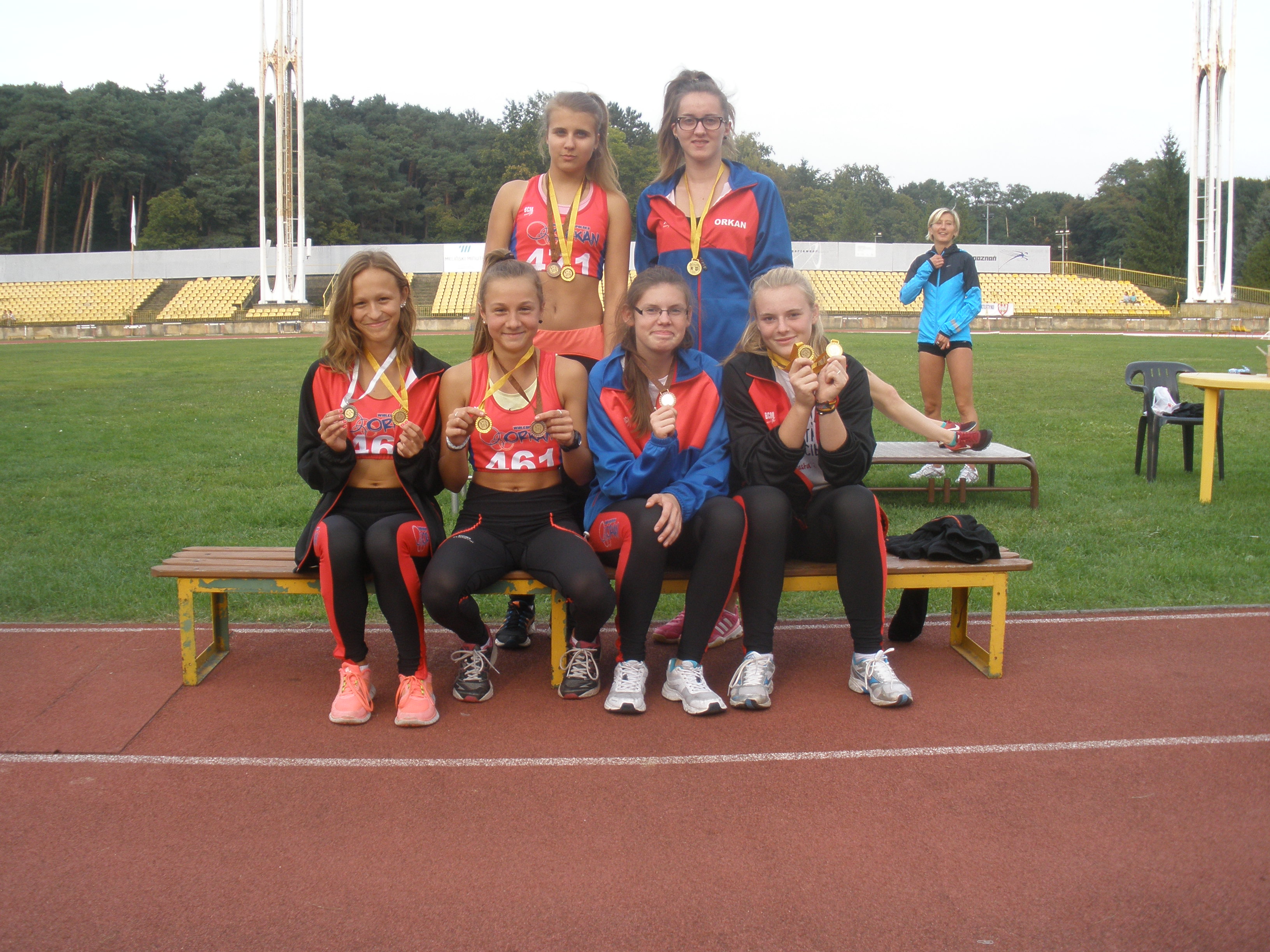 Złoty medal zdobyły dziewczęta w sztafecie 4x100m. Pobiegły w składzie: Sara Neumann, Anna Kulpińska, Nadim Leszczyńska i Dorota Durska. Wynik 52,22 może okzazać się wystarczającym do awansu na Mistrzostwa Polski Młodzików. Do tychże kwalifikuje się osiem najlepszych sztafet ze wszystkich takich Mistrzostw w kraju. Te wyniki pozmnamy za dwa-trzy dni.