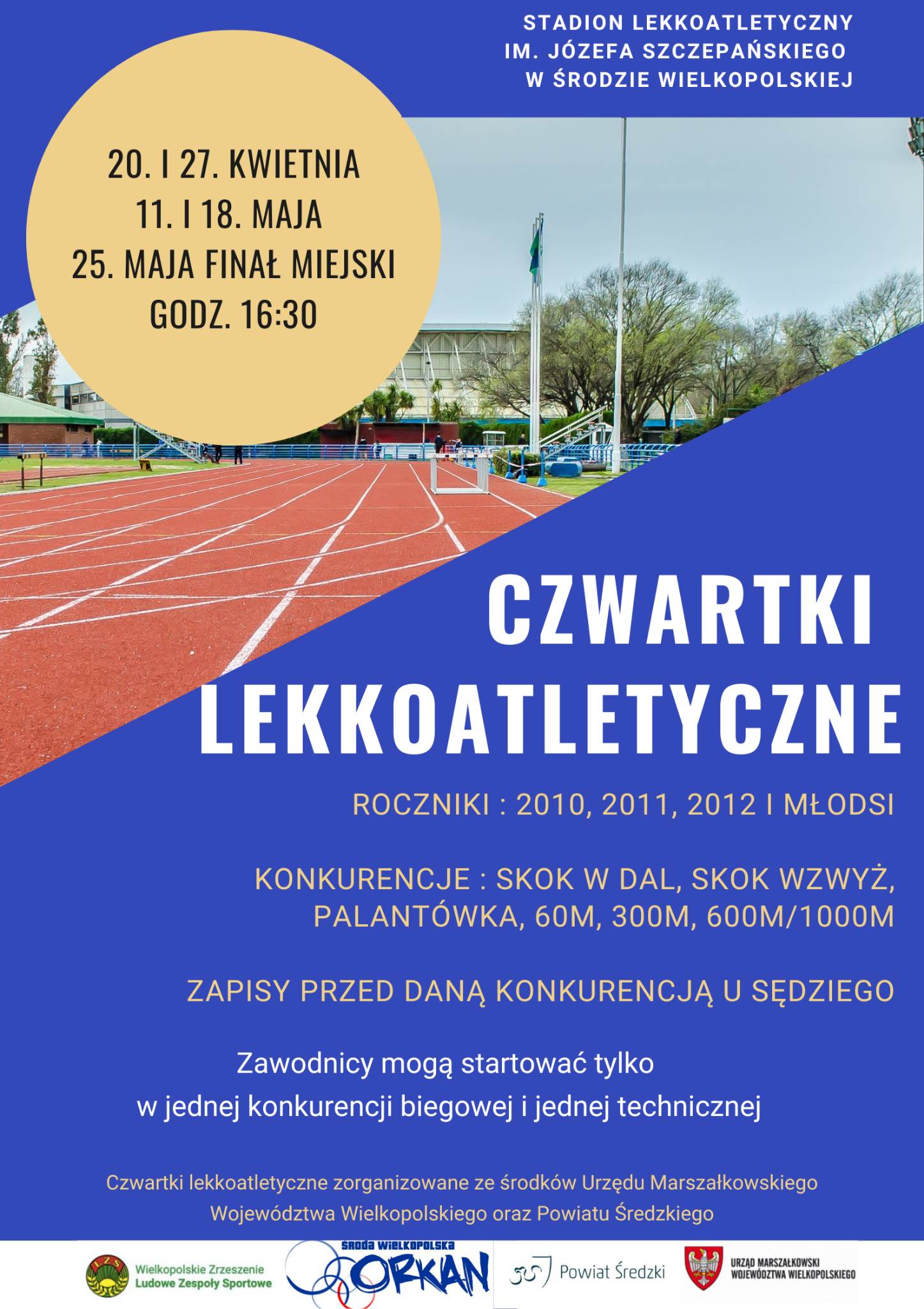 Z pomocą Wielkpopolskiego Zrzesznia LZS i  Starostwa Powiatowergo organizujemy kolejne Czwartki LA.Foto 600m Są one częścią Ogólnopolskiego Programu czwartków prowadzonych przez Stowarzyszenie Sport Dzieci i Młodzieży. Regulamin wynika z Regulaminu Stawarzyszenia i realizuje cele stowarzyszenia. Dzięki temu kolejne pokolenia dzieci w wieku 10-13 lat mogą przeżyc sportową przygodę. Dla wielu to pierwszy krok w stronę sukcesów sportowych na szerszych arenach, nie tylko lekkoatletycznych.